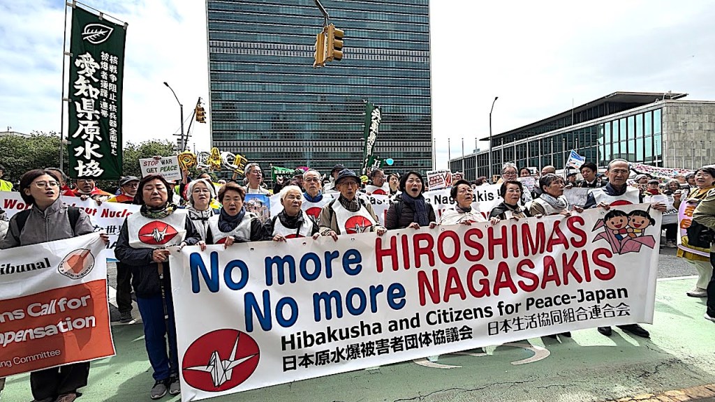 Rally with music and speakers, including Japanese & Korean Hibakusha, members of their delegations to the Treaty conference, and U.S. antinuclear activists.
