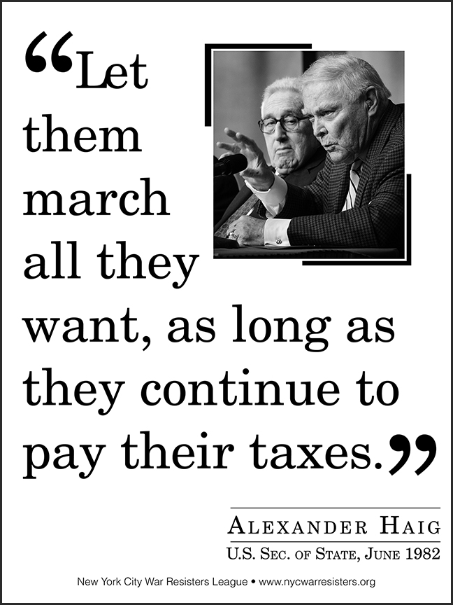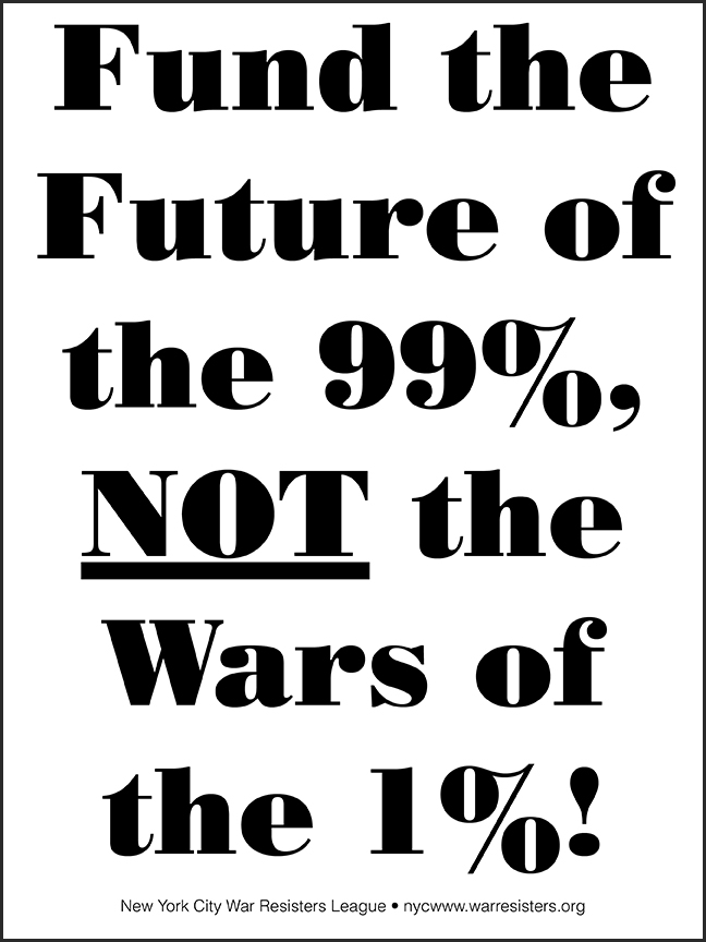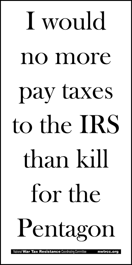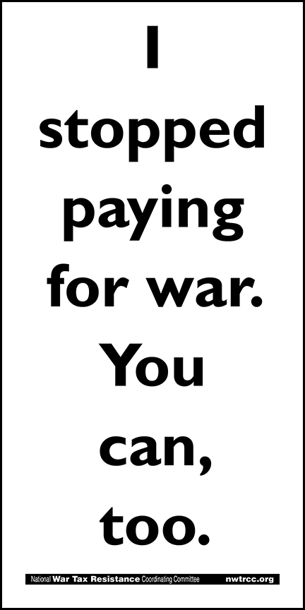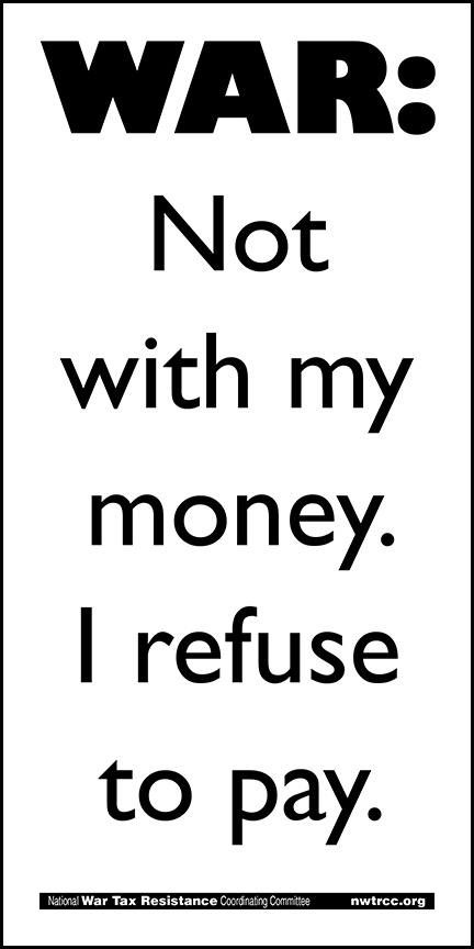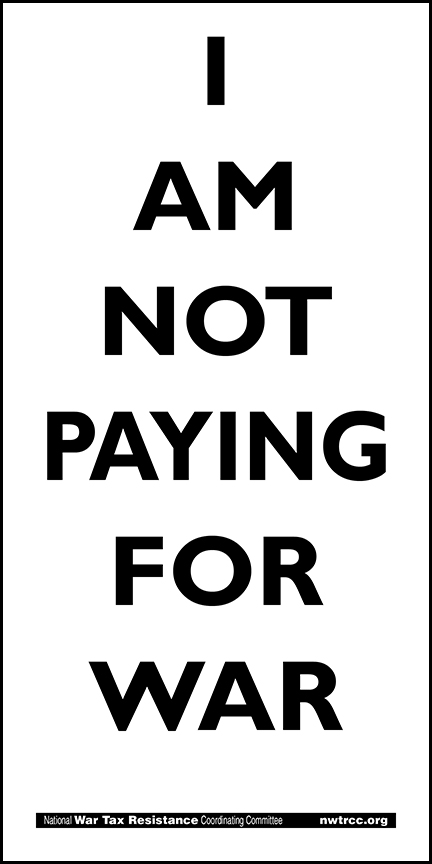 War tax resistance posters and signs. To download a JPG, click on an image to go to an enlarged version, then right click on bigger image to copy or save. If you need a PDF or something higher resolution, please contact us at NYCWRL@nycwarresisters.org.